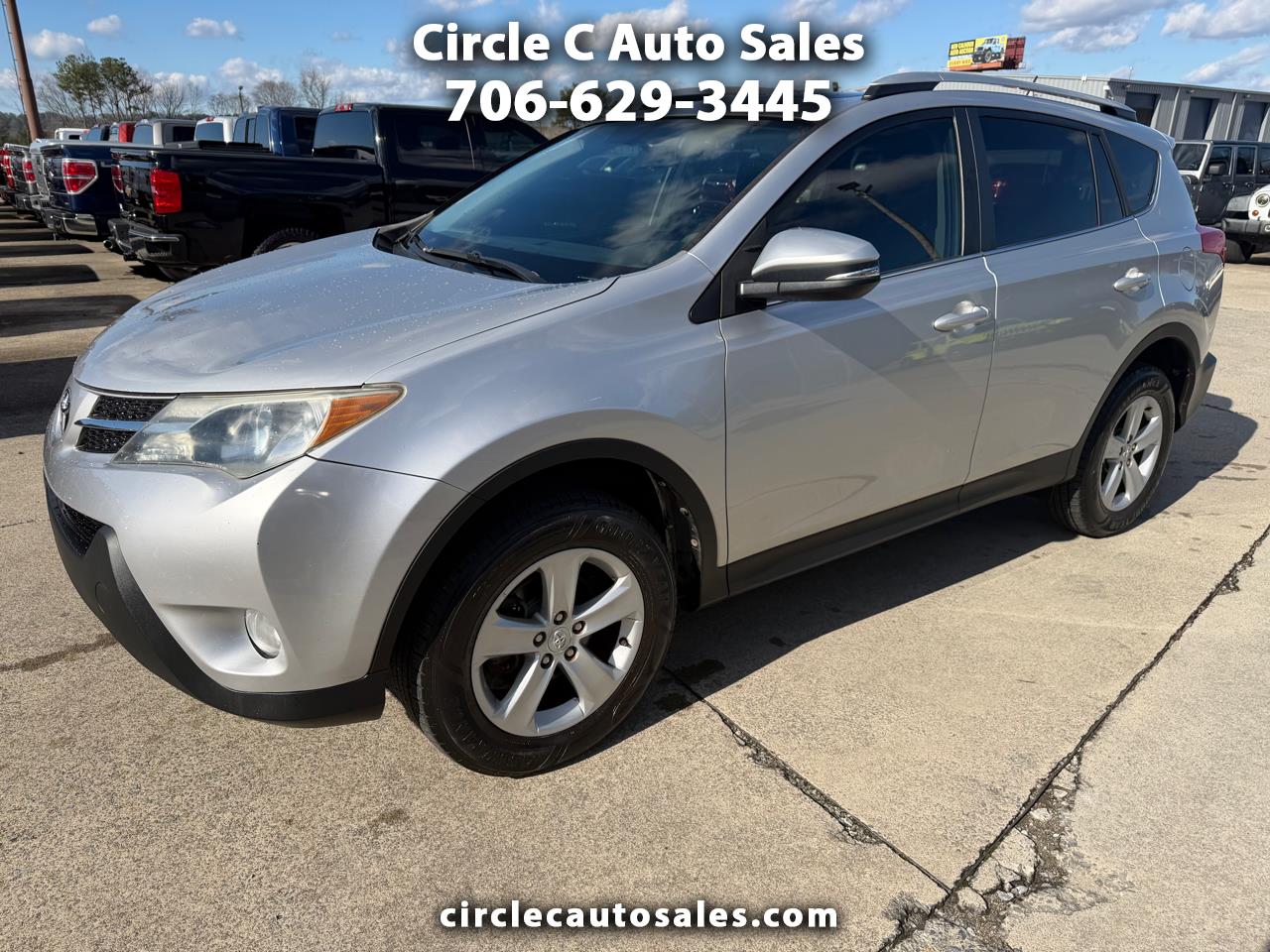 Hop into this sleek Silver 2014 Toyota RAV4 and embrace your inner explorer! With its reliable 4WD/AWD system and traction control, you'll be ready to take on any terrain that comes your way. This sporty SUV comes equipped with plenty of space for all your gear, thanks to its cargo area cover and cargo area tiedowns. Cruise control will make your road trips a breeze, while the air conditioning keeps you cool on those hot summer days. Jam out to your favorite tunes on the CD player as you watch the world go by through the deep tinted glass windows. The power sunroof adds a touch of luxury to your adventure, and the rear spoiler gives you that sporty edge. With alloy wheels and automatic headlights, you'll arrive in style no matter where you're headed. So pack your bags, grab your friends, and hit the road in this fantastic Toyota RAV4 - the perfect companion for all your upcoming journeys!Visit Circle C Auto Sales website at www.circlecautosales.com to see more pictures of this vehicle or call us at 706-629-3445 today to schedule your test drive. Thank you, and have a great day!