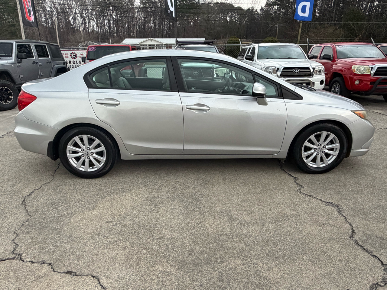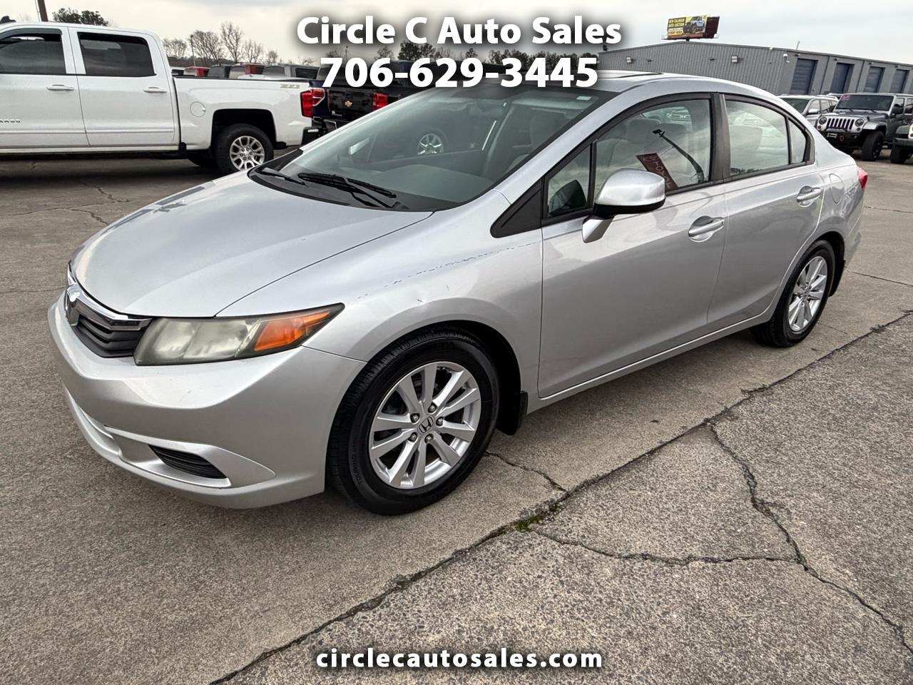 Step into this sleek 2012 Honda Civic and get ready for a fun and reliable ride! Whether you're cruising around town or heading out on a road trip, this silver beauty has got you covered. With its modern design and alloy wheels, you'll be turning heads wherever you go. Safety is a priority with features like ABS brakes, multiple airbags, and traction control to give you peace of mind on the road. The sunroof lets in plenty of natural light, while the air conditioning keeps you cool and comfortable. The steering wheel-mounted controls make it easy to adjust the cruise control and tune into your favorite AM/FM radio station. Plus, the spacious second row folding seat offers extra storage for all your gear. So buckle up, hit the road, and enjoy the smooth and efficient performance of this fantastic Honda Civic!Visit Circle C Auto Sales website at www.circlecautosales.com to see more pictures of this vehicle or call us at 706-629-3445 today to schedule your test drive. Thank you, and have a great day!