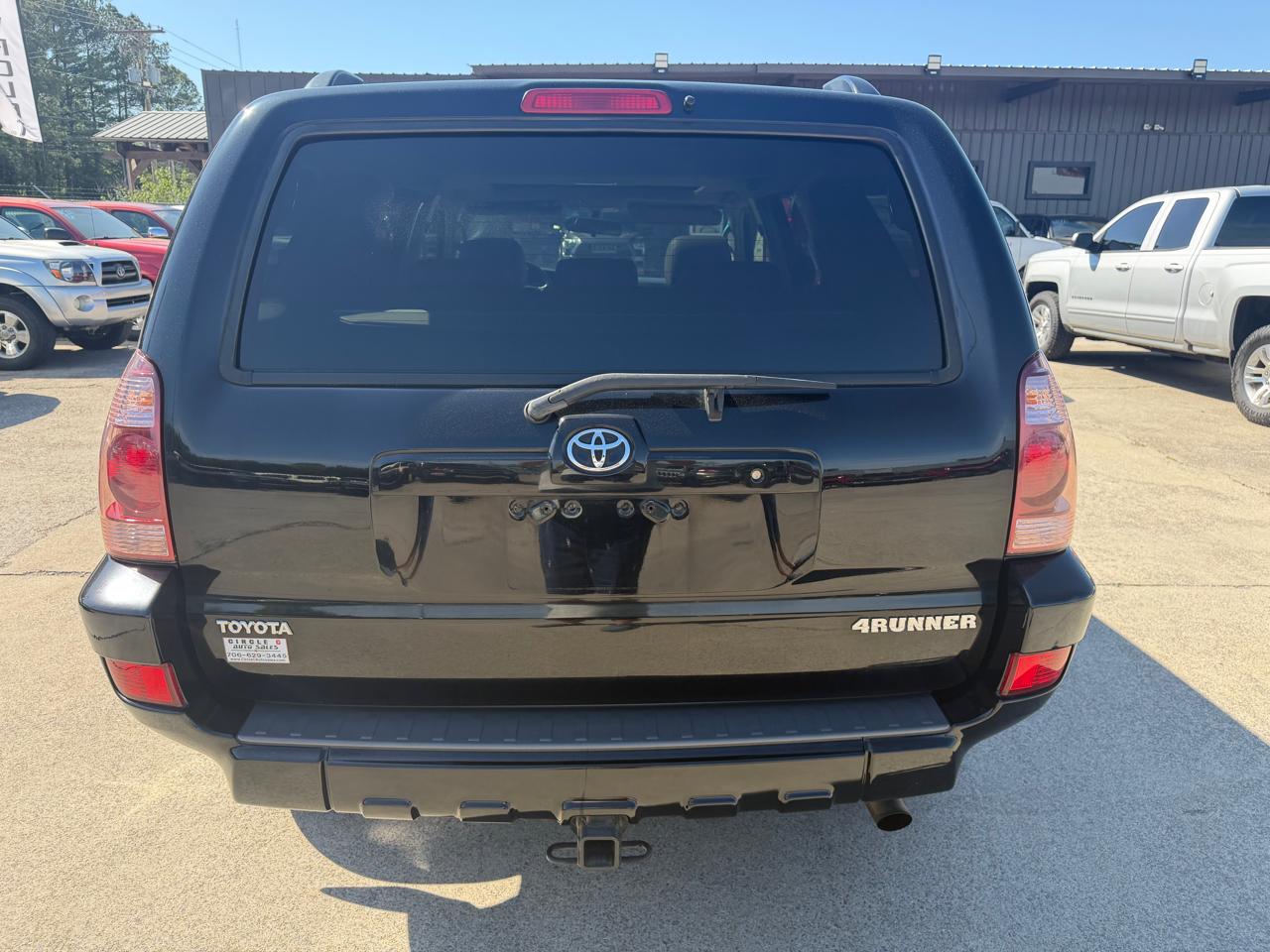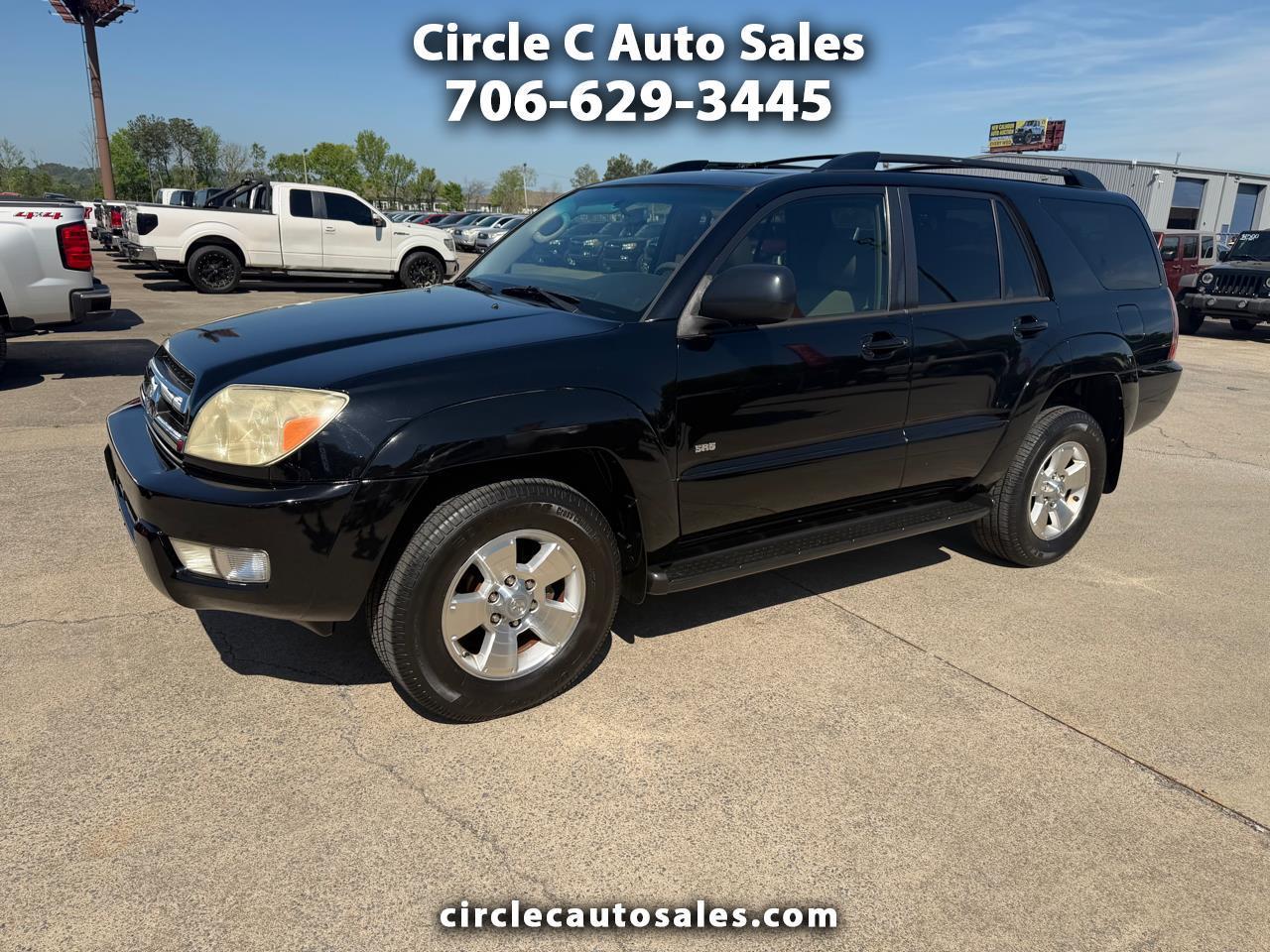 Introducing the sleek and stylish Black 2005 Toyota 4Runner! This rugged yet refined SUV is ready to tackle any adventure with confidence. With a spacious interior that offers ample room for both passengers and cargo, this 4Runner is perfect for road trips or daily commutes. The powerful engine provides a smooth and responsive ride, while features like ABS brakes and traction control ensure safety and stability on any road surface. Whether you're cruising down the highway or exploring off the beaten path, the 4Runner's versatile performance will impress. Plus, with convenient options like keyless entry and steering wheel mounted controls, every drive is a breeze. So why settle for ordinary when you can have extraordinary? Come test drive this Black 2005 Toyota 4Runner today and experience the perfect blend of comfort, capability, and style!Visit Circle C Auto Sales website at www.circlecautosales.com to see more pictures of this vehicle or call us at 706-629-3445 today to schedule your test drive. Thank you, and have a great day!