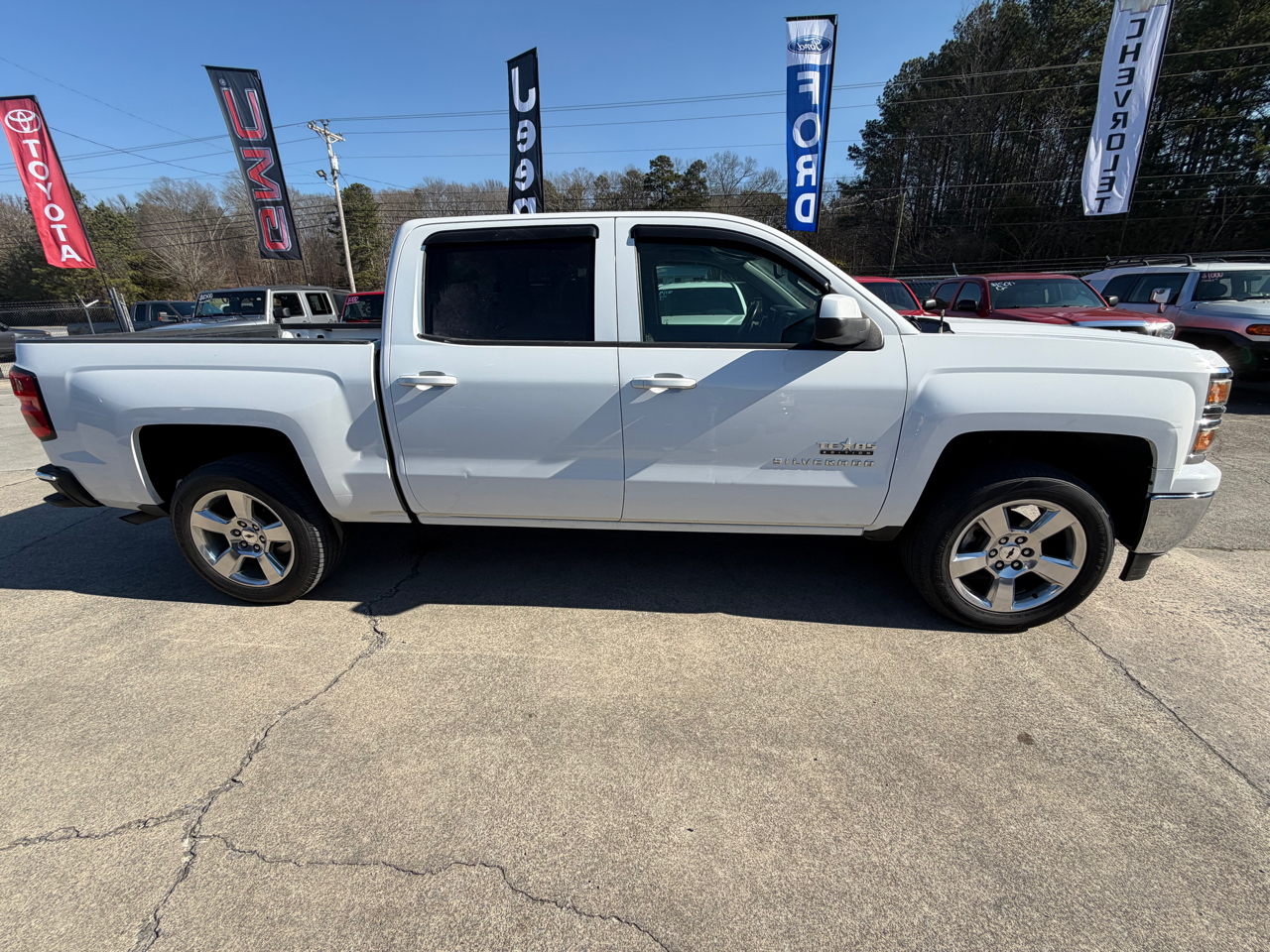 Get ready to hit the road in style with this sleek White 2014 Chevrolet Silverado 1500! This truck is not just a pretty face – it's equipped with all the bells and whistles you need for a smooth and safe ride. With features like child safety door locks and airbags all around, you can rest easy knowing your precious cargo is protected. The locking differential and traction control will keep you steady on any terrain, while the air conditioning and cruise control ensure you stay comfortable on long drives. Pop in a CD and crank up the tunes with the CD player, or take advantage of the telematics system for hands-free calling. And when it comes to hauling, the tow hitch receiver and pickup truck cargo box light have got you covered. With alloy wheels and automatic headlights, this Silverado not only performs like a champ, but looks good doing it. Don't miss out on this reliable and versatile truck that's ready to take you on your next adventure!Visit Circle C Auto Sales website at www.circlecautosales.com to see more pictures of this vehicle or call us at 706-629-3445 today to schedule your test drive. Thank you, and have a great day!